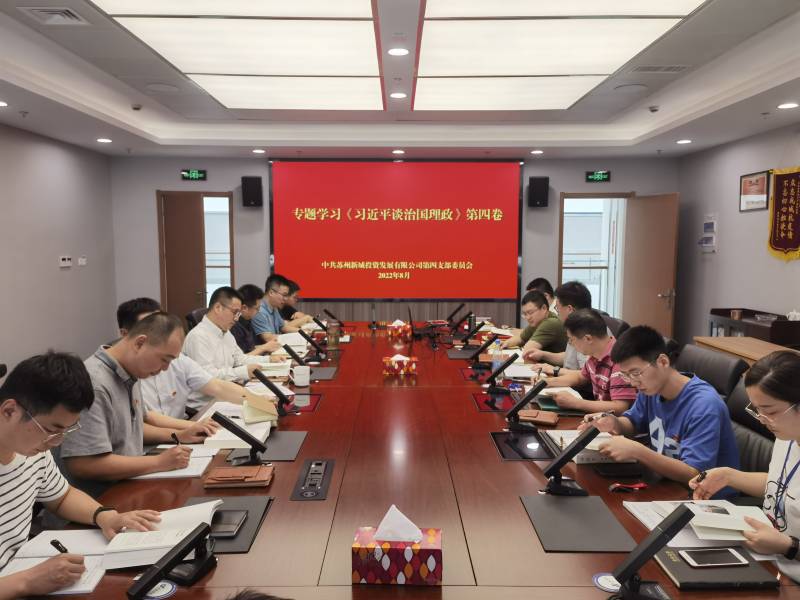 8月24日,新城投资公司第四党支部召开专题学习会,集中学习《习近平谈治国理政》第四卷,研究贯彻落实意见。
