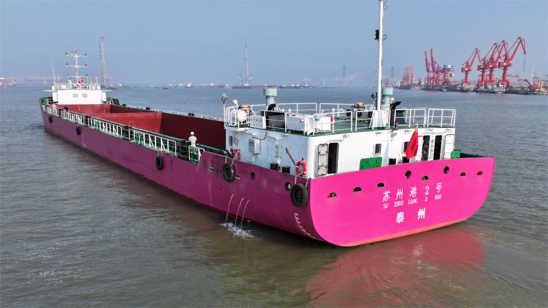 “苏州港2号”轮总长79.9米,宽12.6米,深4.75米,设计航速10节,于2022年9月开工建造,2023年5月成功吉水。此次试航重点验证船舶航行系统、推进系统、操作航行等方面性能。各项测试结果显示,“苏州港2号”轮在空船重量控制、航速、动力系统可靠性等方面均达到预定目标,符合设计要求。