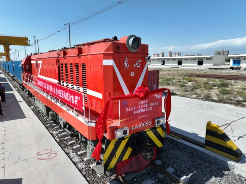 9月9日下午,在苏州和霍尔果斯两地共同推动下,科克舍套—霍尔果斯—苏州太仓中亚班列首发仪式在霍尔果斯铁路口岸站换装库举行。霍尔果斯经济开发区党工委委员、管委会副主任张淼,霍尔果斯经济开发区管委会副主任,江苏援伊·苏州工作组组长孙晓江,霍尔果斯市委常委,江苏援伊·苏州工作组副组长袁小骏,霍尔果斯铁路口岸站副站长郭三,霍尔果斯海关副关长李降等出席发车仪式。