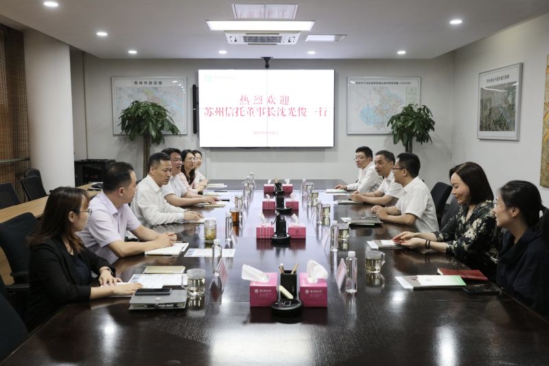 9月26日,苏州信托有限公司董事长沈光俊访问苏州港航集团。苏州港航集团董事长陈建斌、总经理郑丙华会见沈光俊一行。