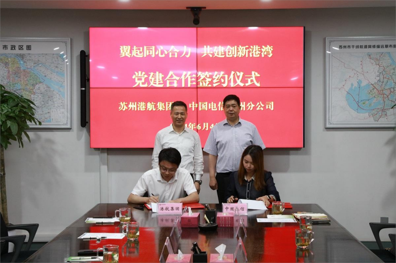 签约仪式上,港航集团长三角一体化物流项目党支部与苏州电信姑苏区局党支部签订党建共建协议,将通过党组织共建、资源共享、活动共办等形式,促进双方党建工作迈上新台阶。港航集团与苏州电信签订业务战略合作协议,双方将围绕高质量发展目标,以“创新驱动、产业联动、优势互补、共促发展”为原则,共同推进云计算、智慧港航、5G技术应用、低空物流等领域合作,推动形成合作互动、互利共赢、共同发展的合作新格局。