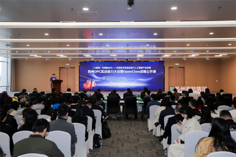 3月20日下午,由苏州市人工智能行业协会、苏州市长三角人工智能生态服务研究院主办,苏州市新洋商业运营管理有限公司协办的"苏州OPC实战能力大会暨OpenClaw战略公开课(港航大厦专场)"港航大厦举办。活动以"‘三服务’先锋助企行"为主题,汇聚市委市级机关工委、市工信局等职能部门及火山引擎、飞书、苏州电信、博云科技等生态伙伴,400余位AI企业代表及OPC群体共探企业级AI Agent安全可控与业务提效路径。